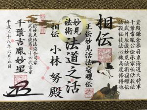 鎌倉時代以降、宮中で皇族に施された治療術「宮中護持法」の正統継承者として初許印可を授かりました。