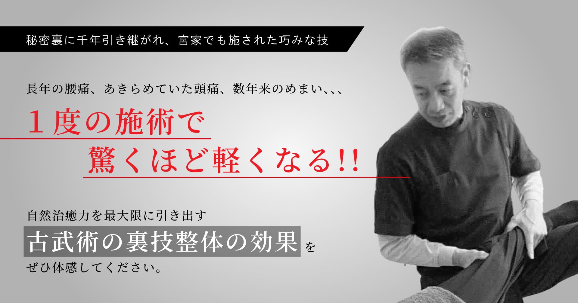 当院では、1000年の歴史がある伝統ある古武術の裏技--